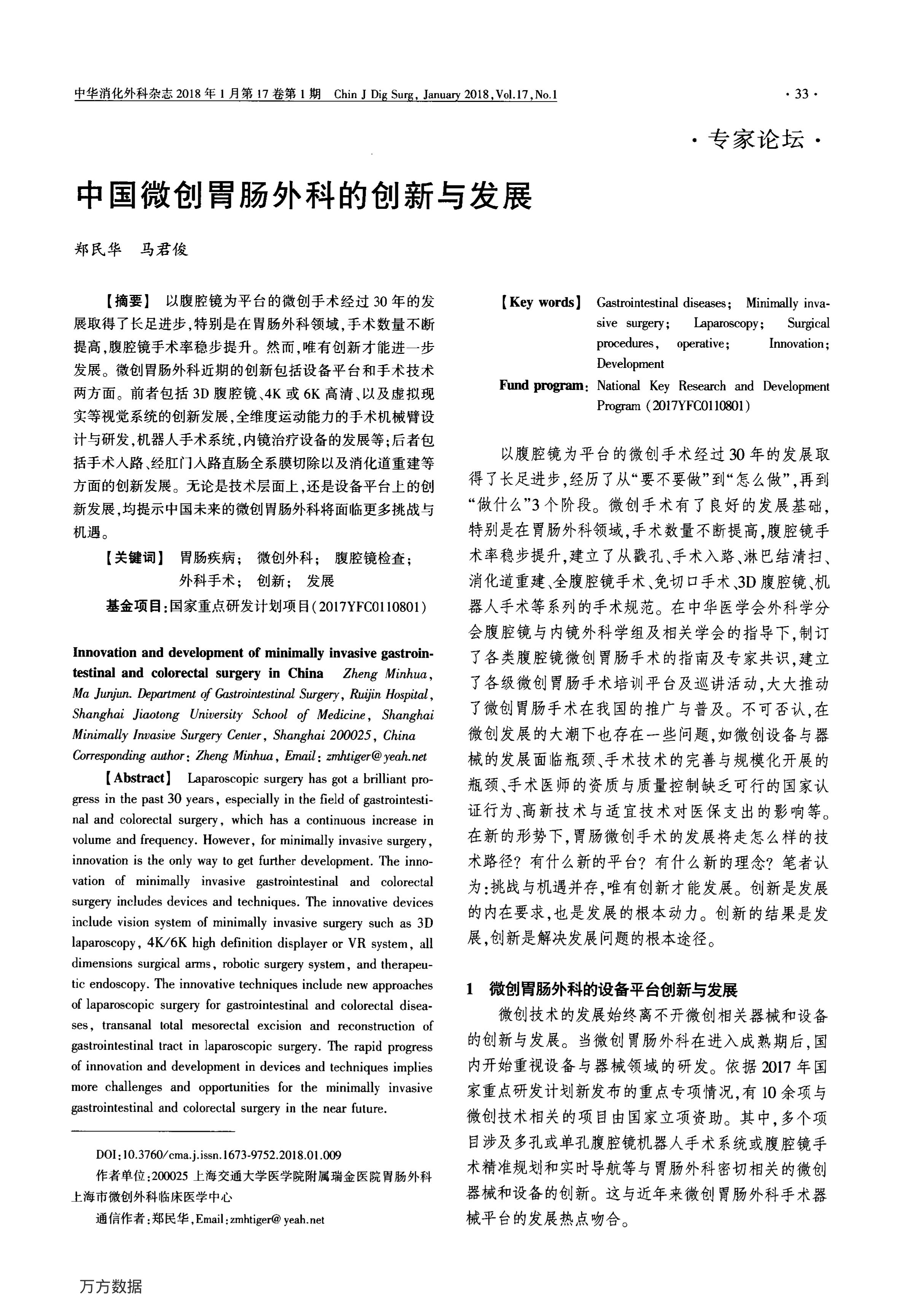 中國(guó)微創(chuàng)胃腸外科的創(chuàng)新與發(fā)展