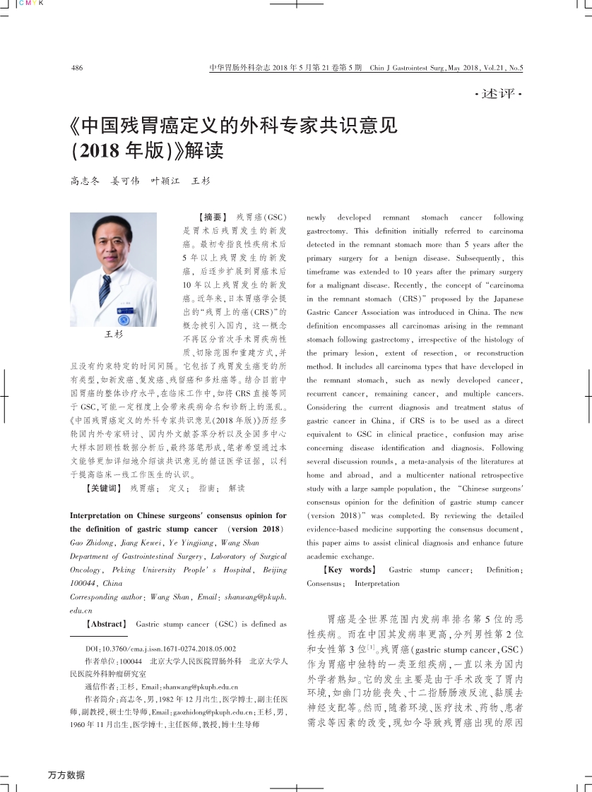《中國(guó)殘胃癌定義的外科專家共識(shí)意見 (2018 年版)》解讀