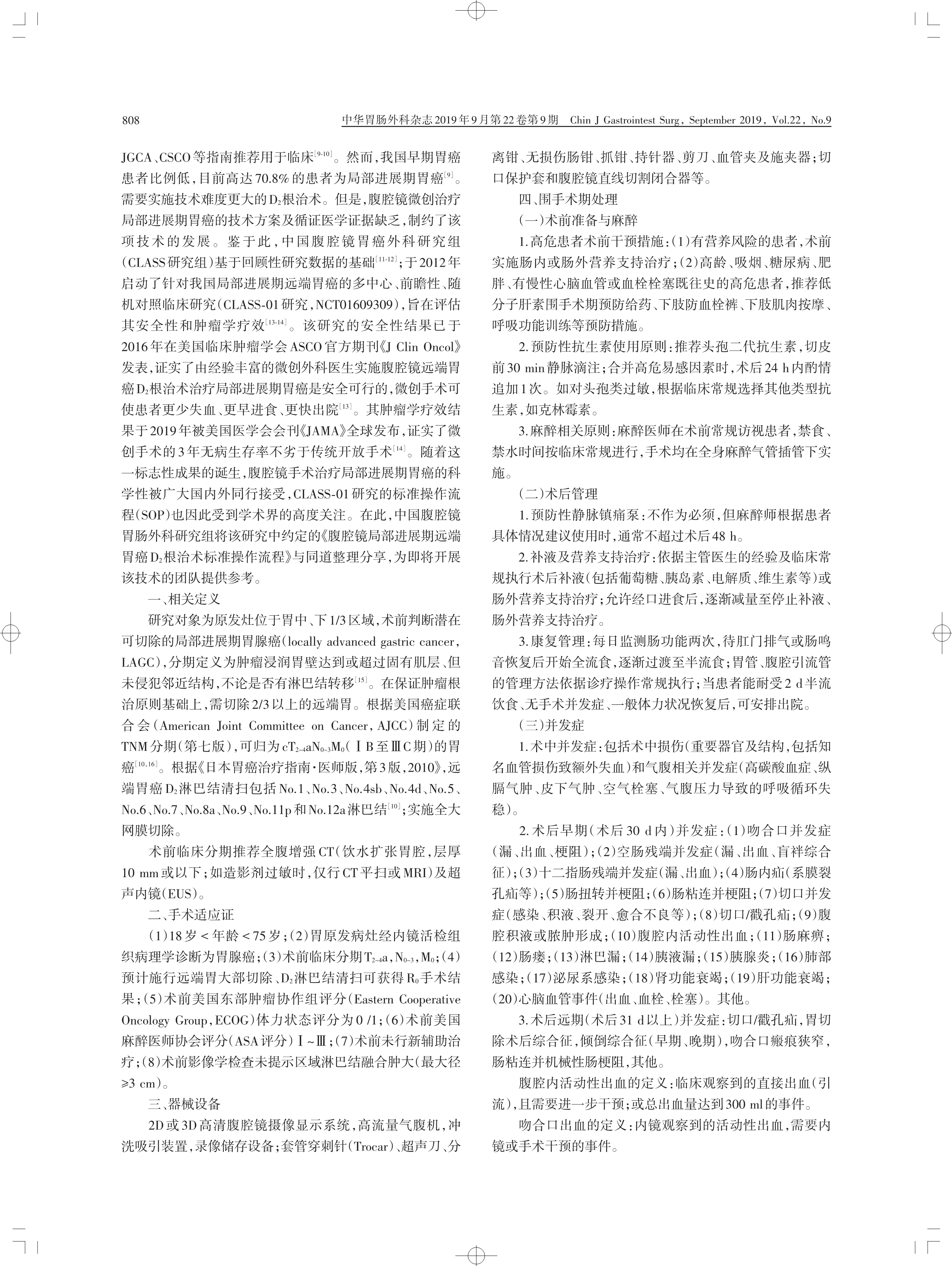 腹腔鏡局部進(jìn)展期遠(yuǎn)端胃癌D2根治術(shù)標(biāo)準(zhǔn)操作流程:CLASS?01 研究共識(shí)