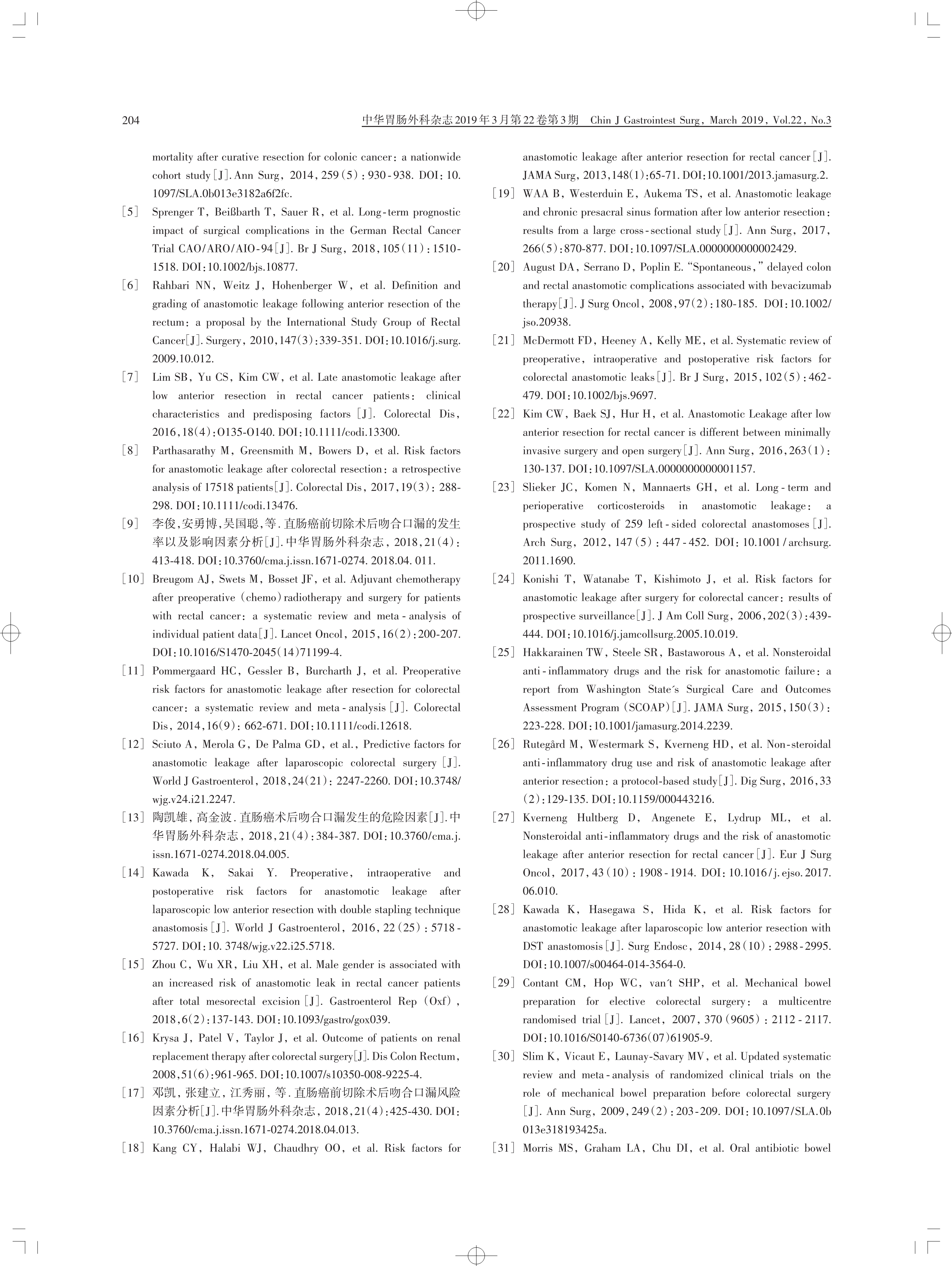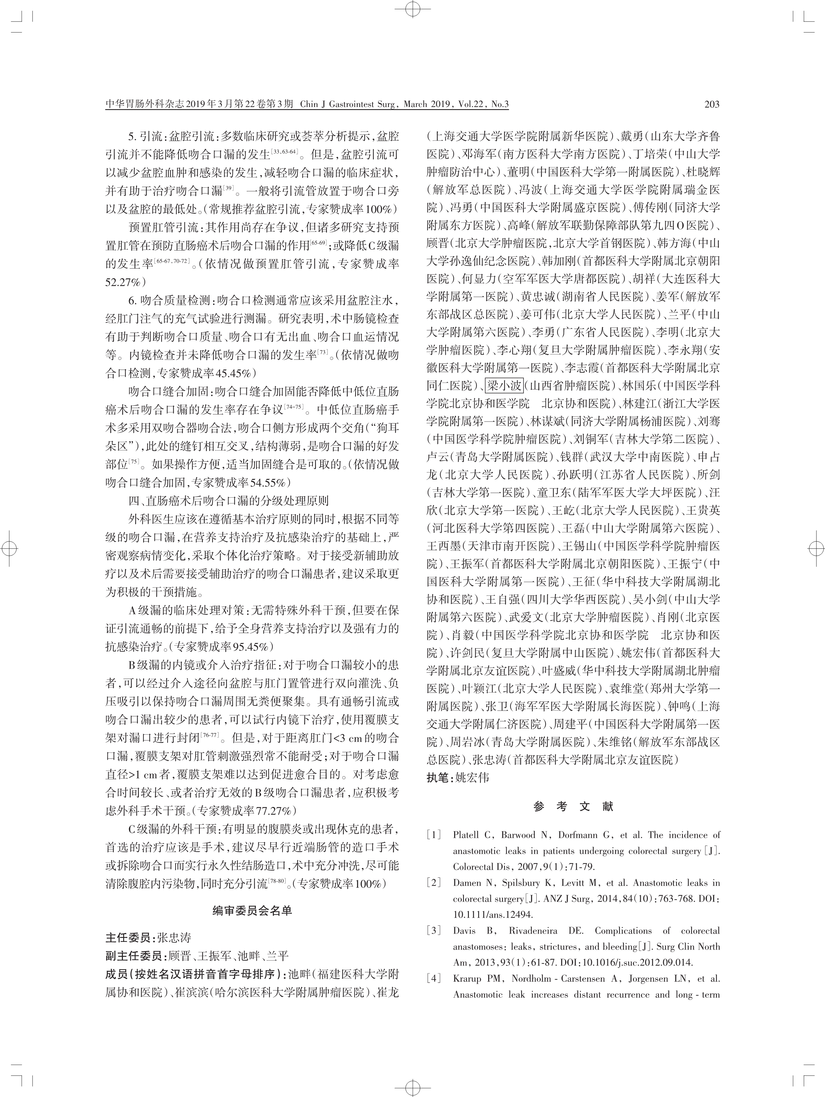 中國(guó)直腸癌手術(shù)吻合口漏診斷、預(yù)防 及處理專家共識(shí)(2019 版)