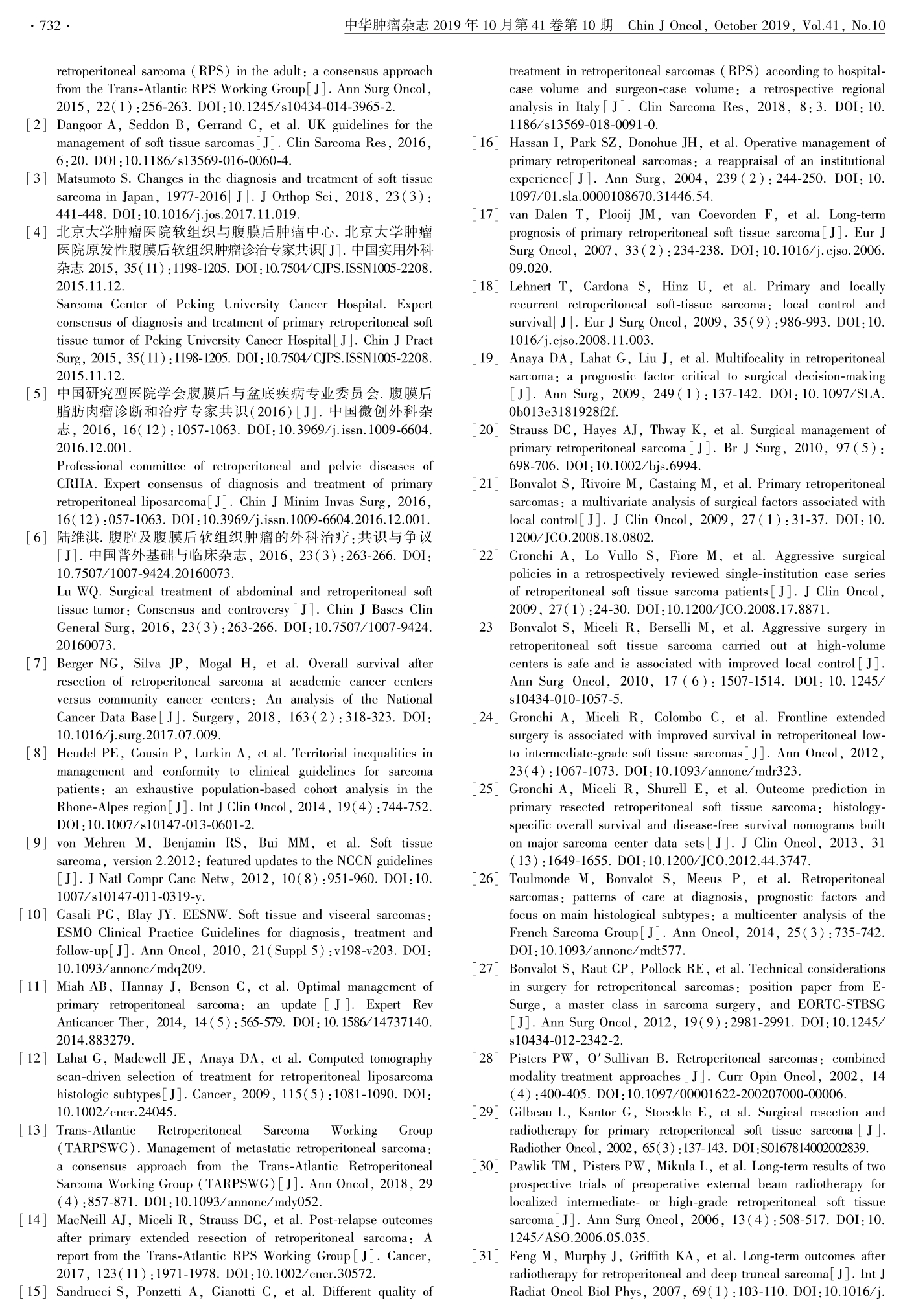 中國(guó)腹膜后腫瘤診治專(zhuān)家共識(shí)(2019版)