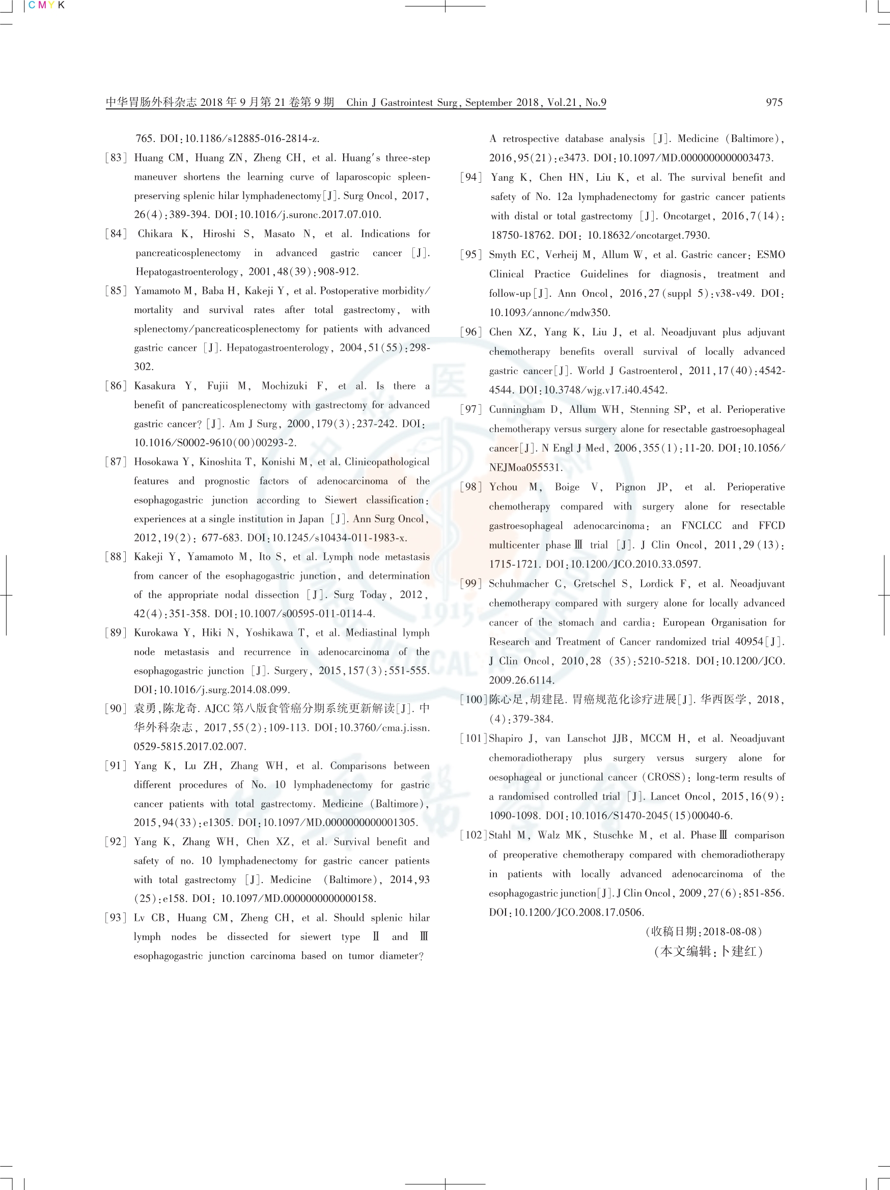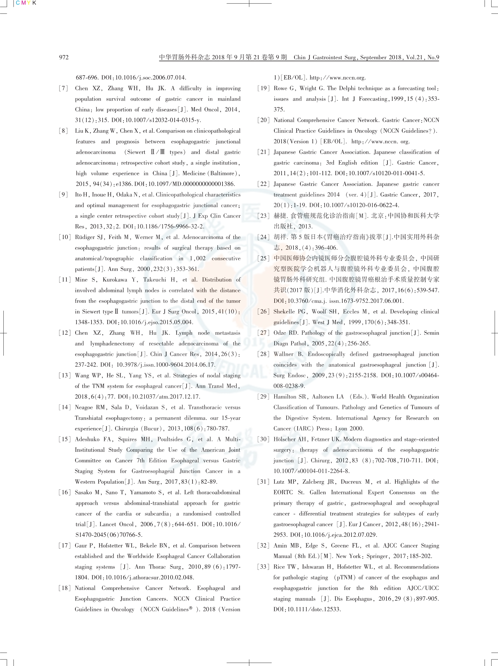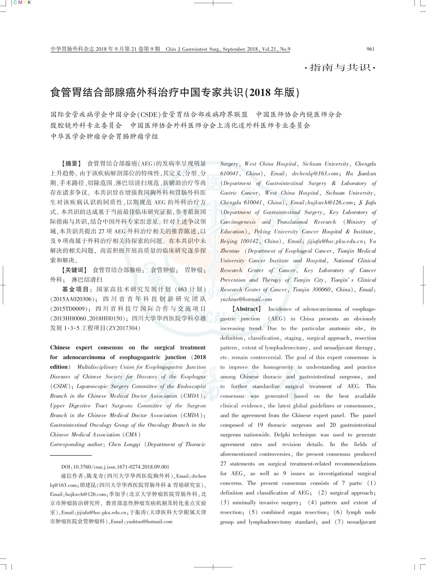 食管胃結(jié)合部腺癌外科治療中國專家共識(shí)(2018版)