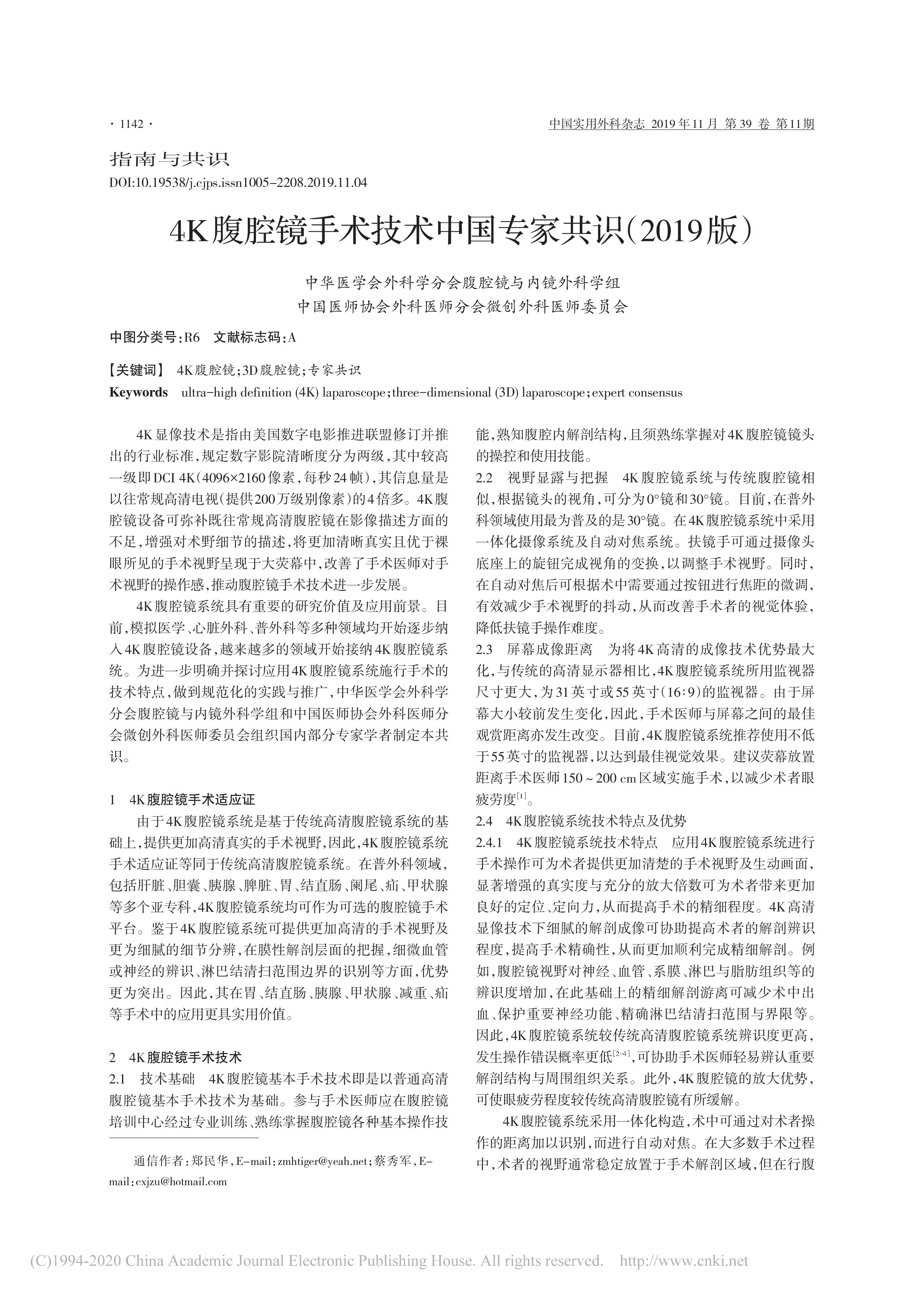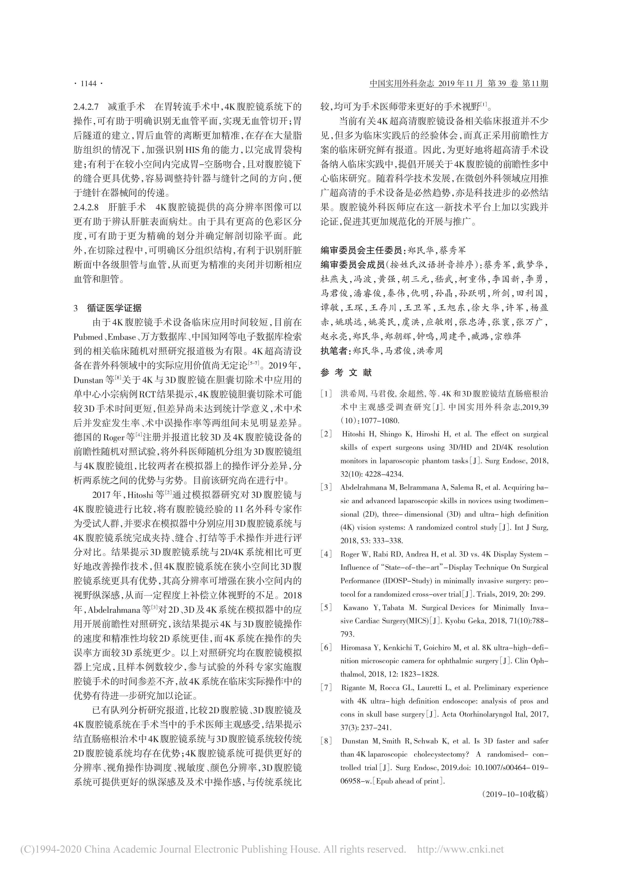4K 腹腔鏡手術(shù)技術(shù)中國(guó)專家共識(shí)(2019 版)