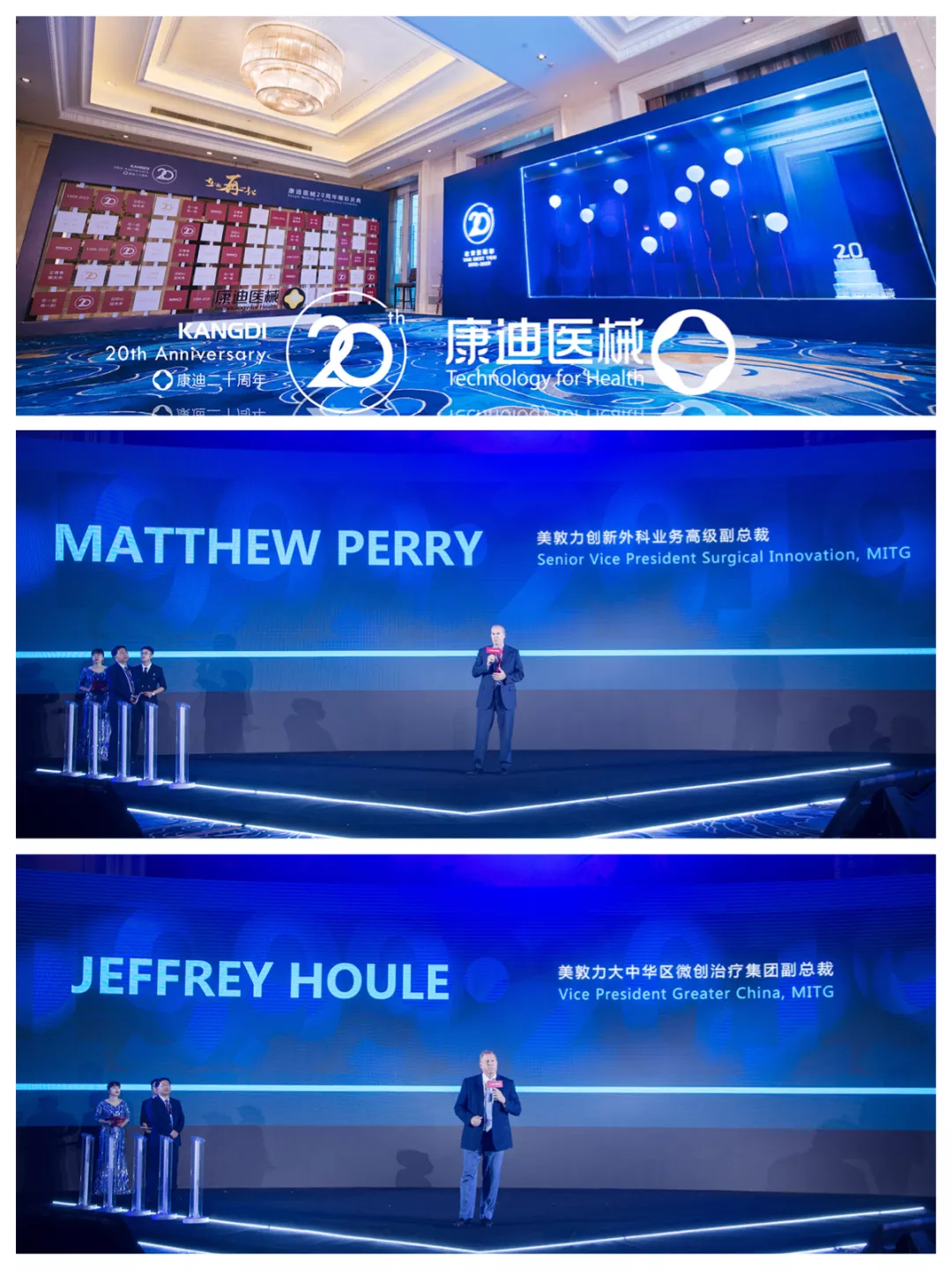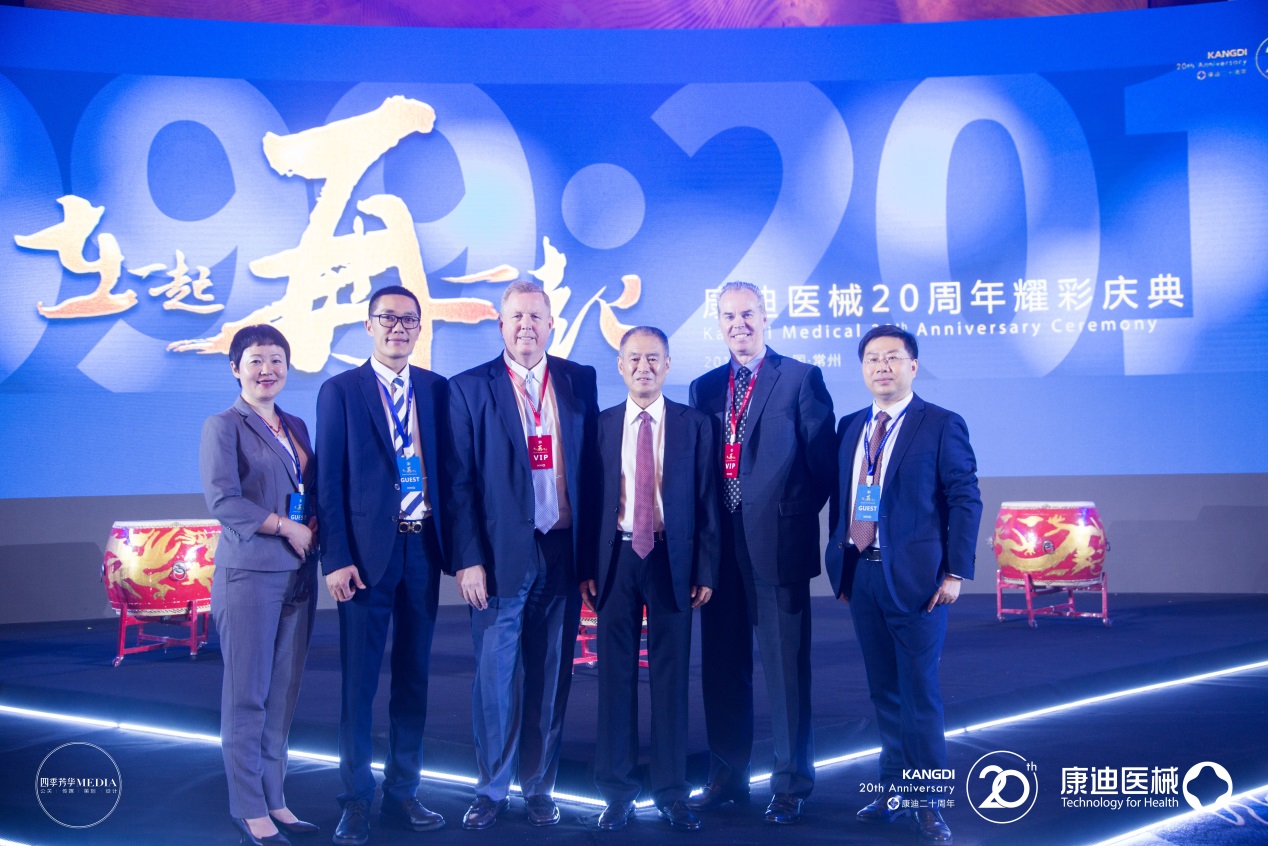 慶典當天,美敦力高管、經(jīng)銷商代表、供應商代表以及康迪全體員工共同慶??档厢t(yī)械創(chuàng)立20周年。